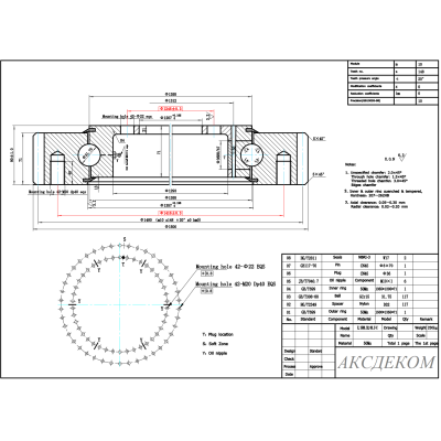 Опорно-поворотное устройство серии E.1500.32.00.C-C производства LDI предназначено для одновременного восприятия осевых, радиальных и опрокидывающих нагрузок с обеспечением плавного вращения узла. Конструкция включает внутреннее и наружное кольца, тела качения, сепараторы и систему уплотнений, что обеспечивает надёжную работу в составе поворотных механизмов промышленного оборудования.