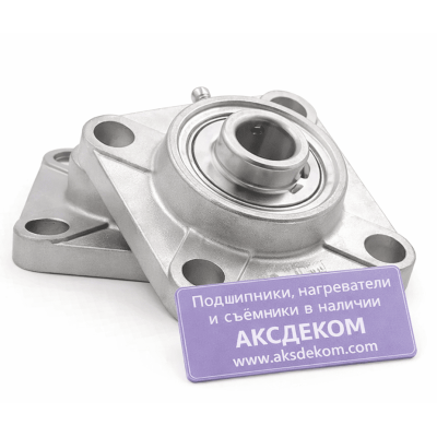 Подшипниковый узел выполнен в квадратном фланцевом корпусе серии UCF и изготовлен из нержавеющей стали. Конструкция корпуса обеспечивает точную посадку подшипника и надёжную фиксацию узла на монтажной поверхности. Узел устойчив к вибрациям и рассчитан на длительную эксплуатацию в сложных условиях.