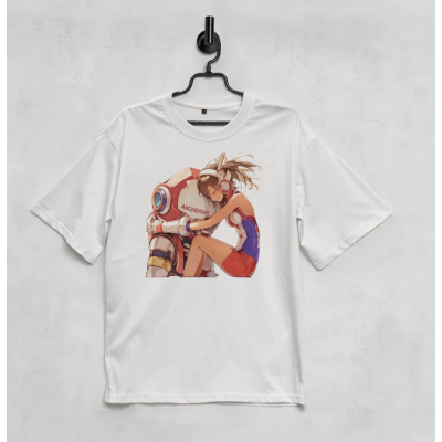Трогательная сцена в стиле аниме — девушка в ярком образе с наушниками обнимает робота. Этот принт — про доверие, тепло и синергию между человеком и машиной. Отличный выбор для тех, кто ценит эмоциональный стиль и эстетику будущего с человеческим лицом.