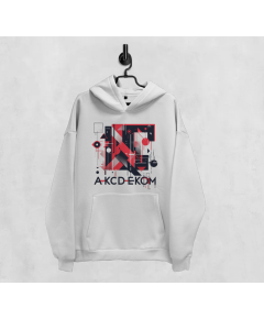 Белое худи оверсайз АКСДЕКОМ модель №5 Современное белое худи с ярким абстрактным принтом в духе конструктивизма. Красно-чёрная геометрия, линии, символы и логотип Аксдеком создают впечатляющий визуальный ритм, вдохновлённый индустриальной эстетикой и цифровой архитектурой. Изготовлено из...