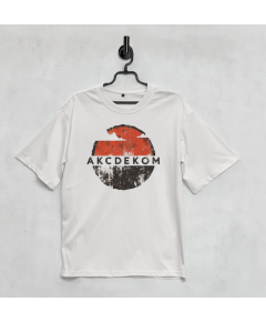 Футболка белая оверсайз АКСДЕКОМ модель №72 Минималистичный и выразительный дизайн: логотип AKCDEKOM размещён по центру на фоне кругового графического знака в индустриальных цветах — чёрном и ржаво-красном. Эффект потёртости придаёт принту винтажную эстетичность, подчёркивая характер и дух...