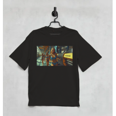 Футболка чёрная оверсайз АКСДЕКОМ модель №44 Яркий индустриальный образ с дерзкой подачей. На фоне производственного цеха — эффектный визуальный контраст: группа девушек в купальниках уверенно проходит мимо тяжёлого оборудования. Взгляд в сторону тех, кто ценит силу, стиль и провокацию....