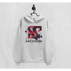 Белое худи оверсайз АКСДЕКОМ модель №5 Современное белое худи с ярким абстрактным принтом в духе конструктивизма. Красно-чёрная геометрия, линии, символы и логотип Аксдеком создают впечатляющий визуальный ритм, вдохновлённый индустриальной эстетикой и цифровой архитектурой. Изготовлено из...