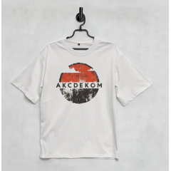 Футболка белая оверсайз АКСДЕКОМ модель №72 Минималистичный и выразительный дизайн: логотип AKCDEKOM размещён по центру на фоне кругового графического знака в индустриальных цветах — чёрном и ржаво-красном. Эффект потёртости придаёт принту винтажную эстетичность, подчёркивая характер и дух...