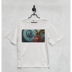 Футболка белая оверсайз АКСДЕКОМ модель №77 На принте — эффектная сцена с двумя девушками в оранжевых платьях на фоне массивного промышленного оборудования. Изображение воплощает баланс между индустриальной мощью и эстетикой формы. Для тех, кто ценит индустриальный стиль и современный...